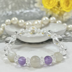 ムーンストーンは 精神を落ち着け 活力と希望を与えて下さる 柔らかな光高きお石様ですので スピリチュアル力や直感力を高める光の強いアメジストを光合わせることで より持つ人の「自分の中にある本当の光」を 輝かせて下さいます。